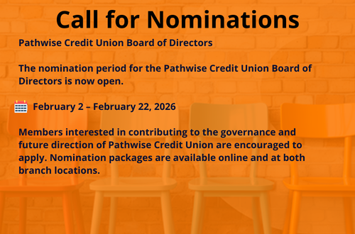 Members interested in contributing to the governance and future direction of Pathwise Credit Union are encouraged to apply. Nomination packages are available online and at both branch locations.